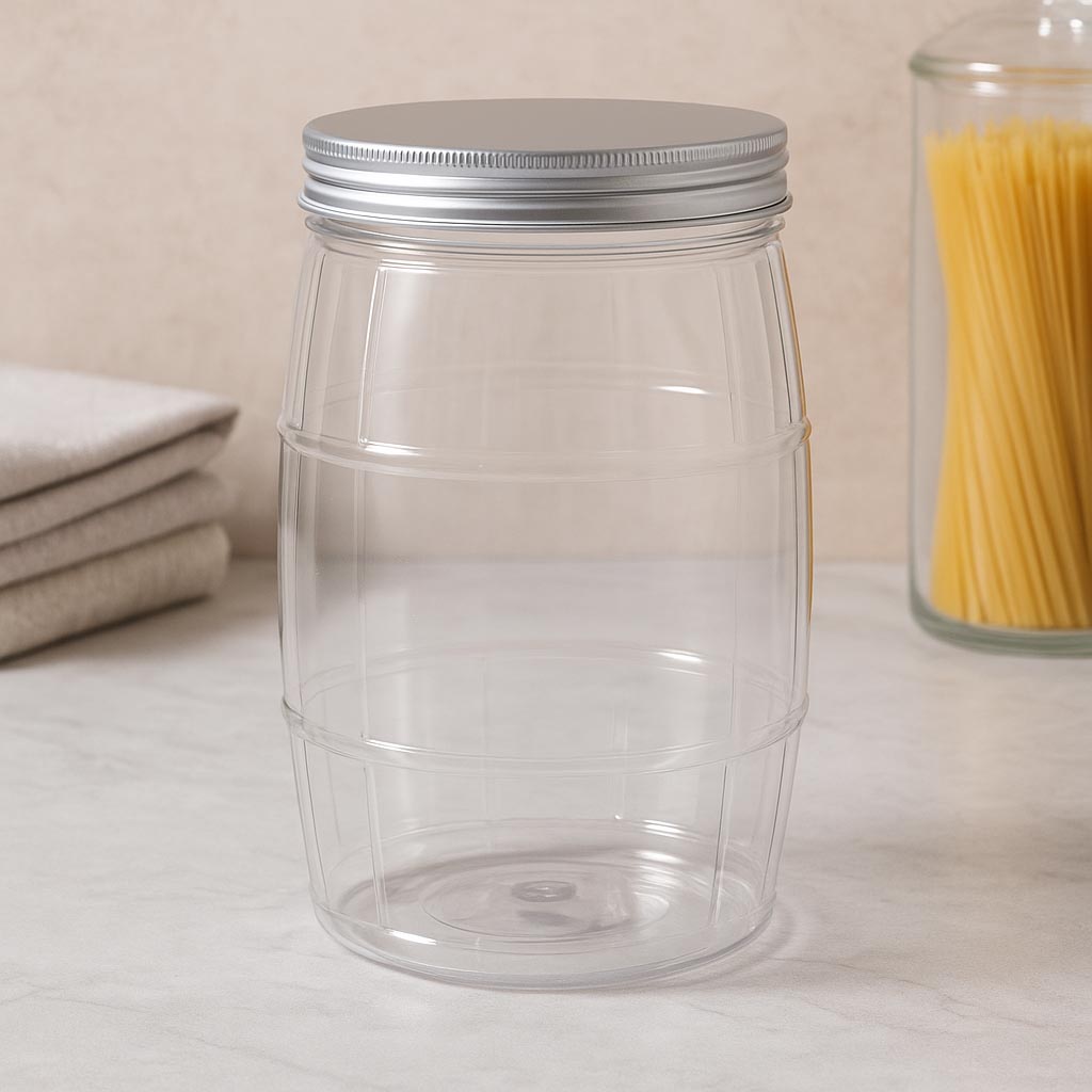 A PET-doboz „Hordó” egyedi dizájnt ötvöz praktikus funkcionalitással, és hű másolatát nyújtja egy klasszikus fahordónak. 1,5 literes űrtartalmával ideális különféle termékek, az élelmiszerektől a dekorációs tartalmakig történő tárolására. A tágas 100/400-as nyílás egyszerű feltöltést és biztonságos zárást tesz lehetővé – megfelelő fedők megtalálhatók kínálatunkban. A könnyű, törésálló PET anyagnak köszönhetően a doboz nemcsak látványos, hanem különösen tartós és sokoldalúan használható.