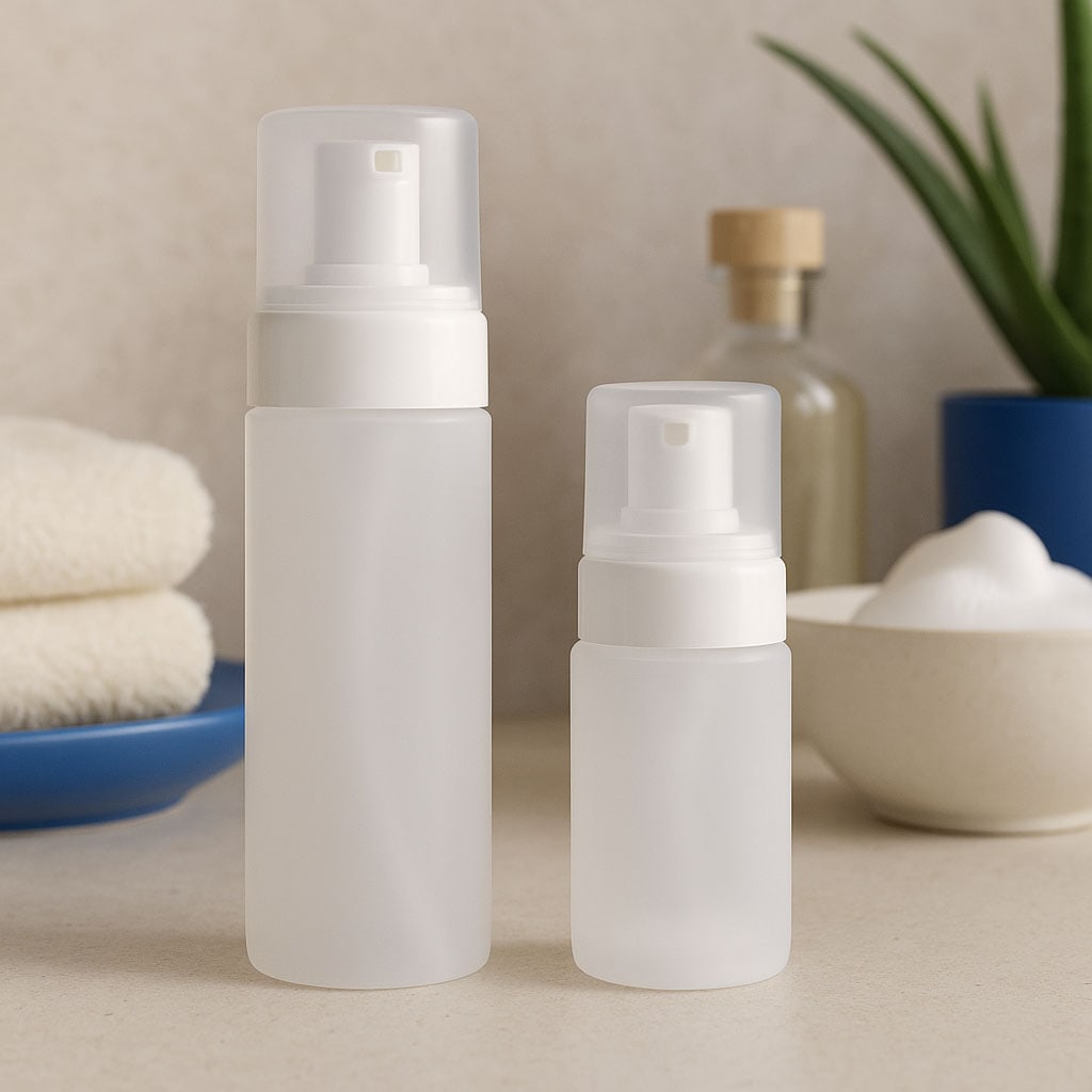 A „Foamer” sorozat praktikus és magas minőségű megoldást kínál különböző folyadékok egyszerű és kontrollált habosítására. A külön megvásárolható mechanikus habadagolóval kombinálva egyenletes és takarékos adagolást biztosít, ideális kozmetikai és higiéniai célokra. A jól átgondolt top-fill rendszer egyszerű utántöltést tesz lehetővé, míg a csavarzár biztonságos kezelést garantál. Kerek alapfelületének és hengeres testformájának köszönhetően a palack kényelmesen illeszkedik a kézbe, modern, funkcionális dizájnt kínálva. 100-tól 150 ml-ig terjedő űrtartalmával a „Foamer” tökéletes választás az innovatív, habos állagot igénylő termékek számára.