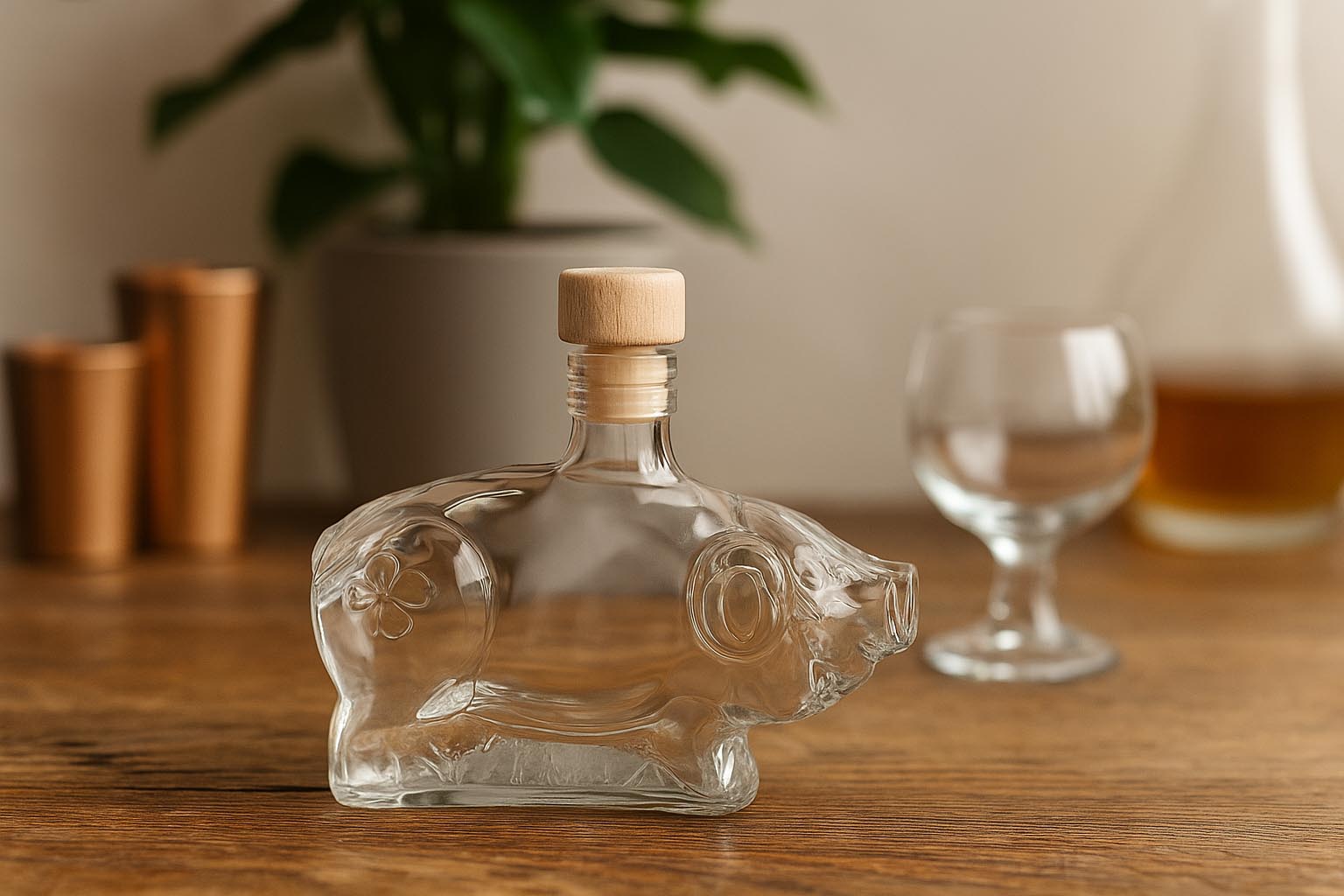 Sokszínű különleges formájú palackjaink, mint az „Eva” és „Ádám”, a „Szerencse malac”, a „Fenyőfa” és a „Mézeskalács emberke” időtlen eleganciát képviselnek, és minőségben, valamint dizájnban is mércét állítanak. Minden palack egy jellegzetes, gyakran gondosan kidolgozott motívummal és kiváló minőségű kivitelezéssel tűnik ki, amely mind a profi felhasználókat, mind az esztétikára érzékeny magánvásárlókat meggyőzi. Az edények különböző méretekben, 40 ml-től 500 ml-ig érhetők el, és parafa-, PP- vagy patentzárral kínálnak stílusos megoldást a szeszes italok, likőrök és egyéb italok biztonságos, légmentes tárolására.
