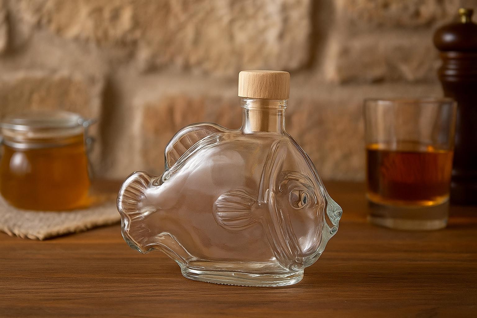 Uvegek es Palackok 200 ml üvegpalack 'Hal', nyílás: parafa