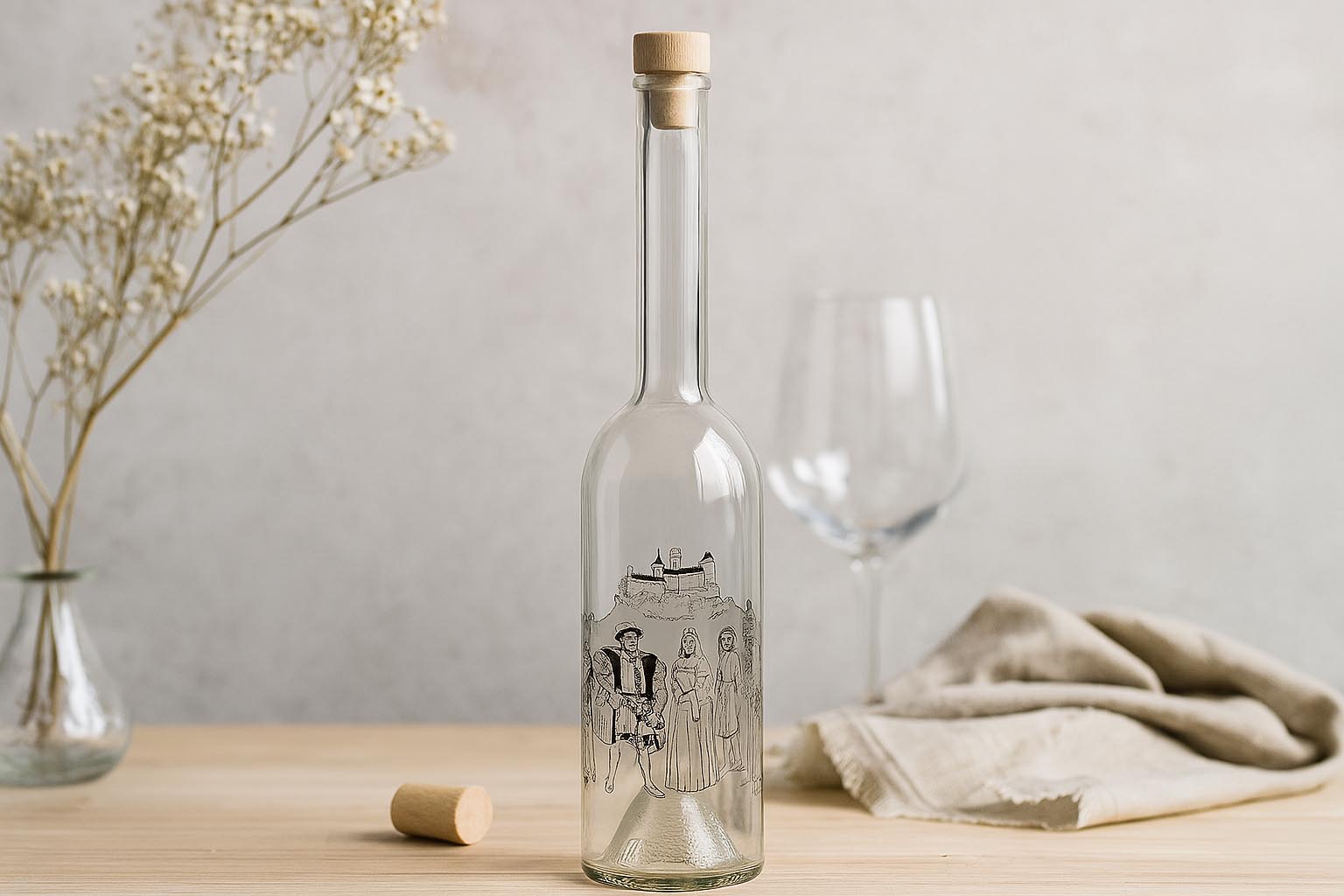 Üvegek es palackok 500 ml üvegpalack 'Opera', motívum: Vadász, nyílás: parafa