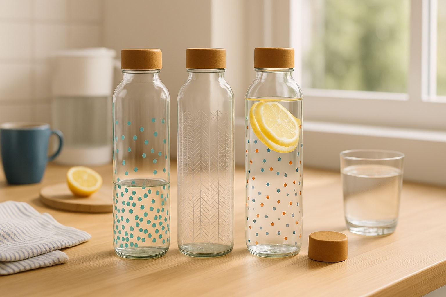 A CARRY Bottle modern dizájnt ötvöz a fenntarthatósággal és a funkcionalitással. Ideális ivópalack környezettudatos emberek számára. Magas minőségű üvegből készült, tartósságával és karcsú, hengeres formájával nyűgöz le, amely kényelmesen illeszkedik a kézbe. A praktikus csavaros nyílás biztonságos záródást biztosít – a megfelelő kupakok megtalálhatók kínálatunkban. Kreatív mintákkal, mint például színes pöttyök, hullámzó vízvonalak és geometriai formák, a CARRY Bottle stílusos hangsúlyokat helyez, és az útközbeni ivást valódi stílusnyilatkozattá varázsolja. Tökéletes mindazoknak, akik a mindennapjaikban az esztétikát és a fenntarthatóságot szeretnék ötvözni.