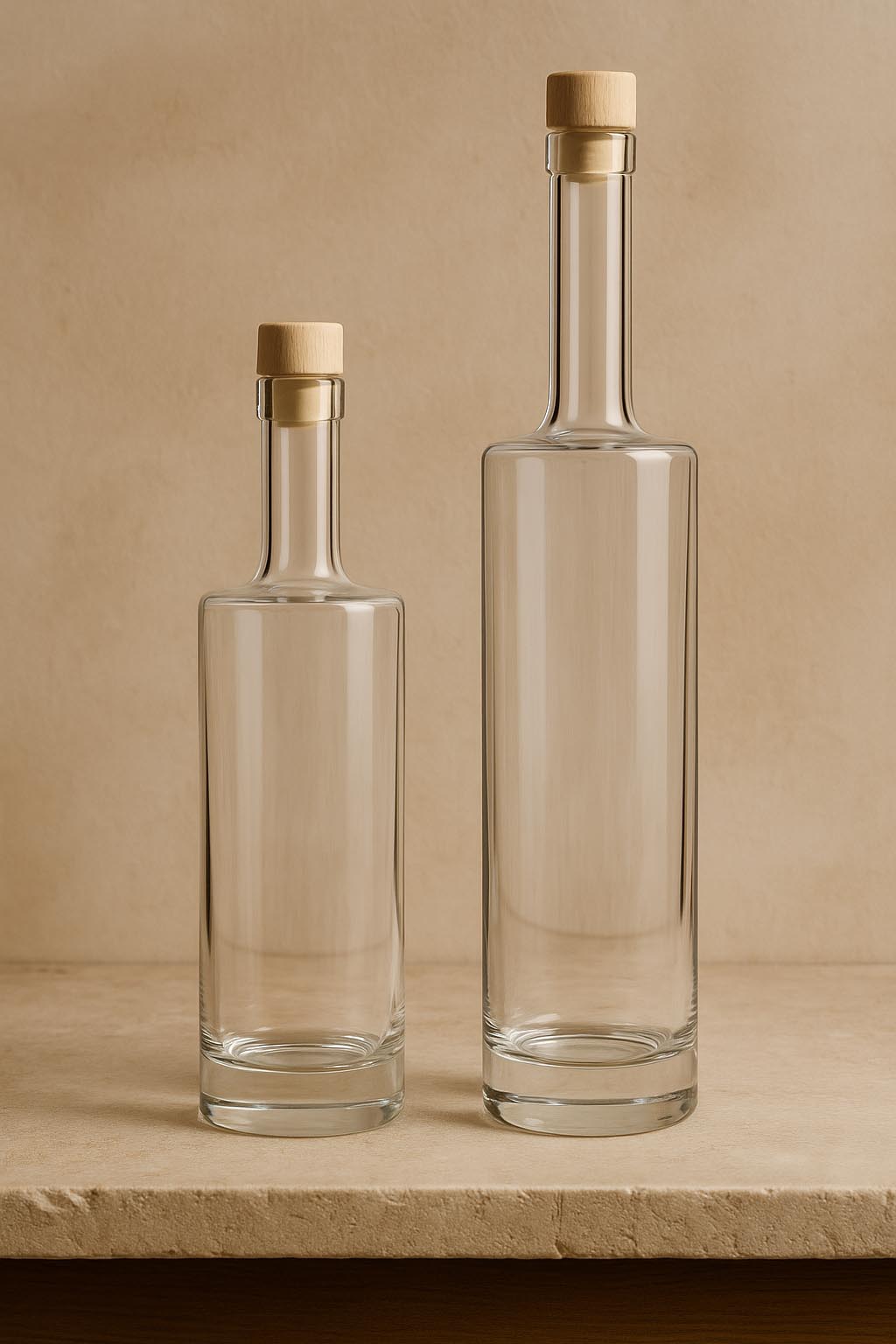 A "Titano" sorozat erőteljes jelenlétet ötvöz kifinomult egyszerűséggel, és új mércét állít a prémium üvegcsomagolások világában. Ez a nemes, átlátszó hengeres üvegpalack masszív üvegaljával lenyűgöz, amely nemcsak stabilitást biztosít, hanem optikai mélységet és exkluzivitást is közvetít. 500 és 700 ml-es kiszerelésekben elérhető, a "Titano" tökéletes választás prémium szeszes italokhoz, nemes likőrökhöz és karakteres párlatokhoz. A parafadugós zárás klasszikus és biztonságos lezárást garantál – a megfelelő zárak megtalálhatók kínálatunkban. Robusztus eleganciájával és időtlen esztétikájával a "Titano" ideális választás igényes márkák számára, akik értékelik a minőséget és a kifejezőerőt.